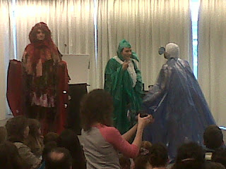 Aqui os dejo algunas fotos del evento, entre ellas las de los diferentes personajes que participan en el proyecto del sonido como son algarabia,silencio y melodia que aparecían en ciertos momentos del evento,y aunque fue interesante su participación algunos de los niños asistentes se asustaron y comenzaron a llorar.